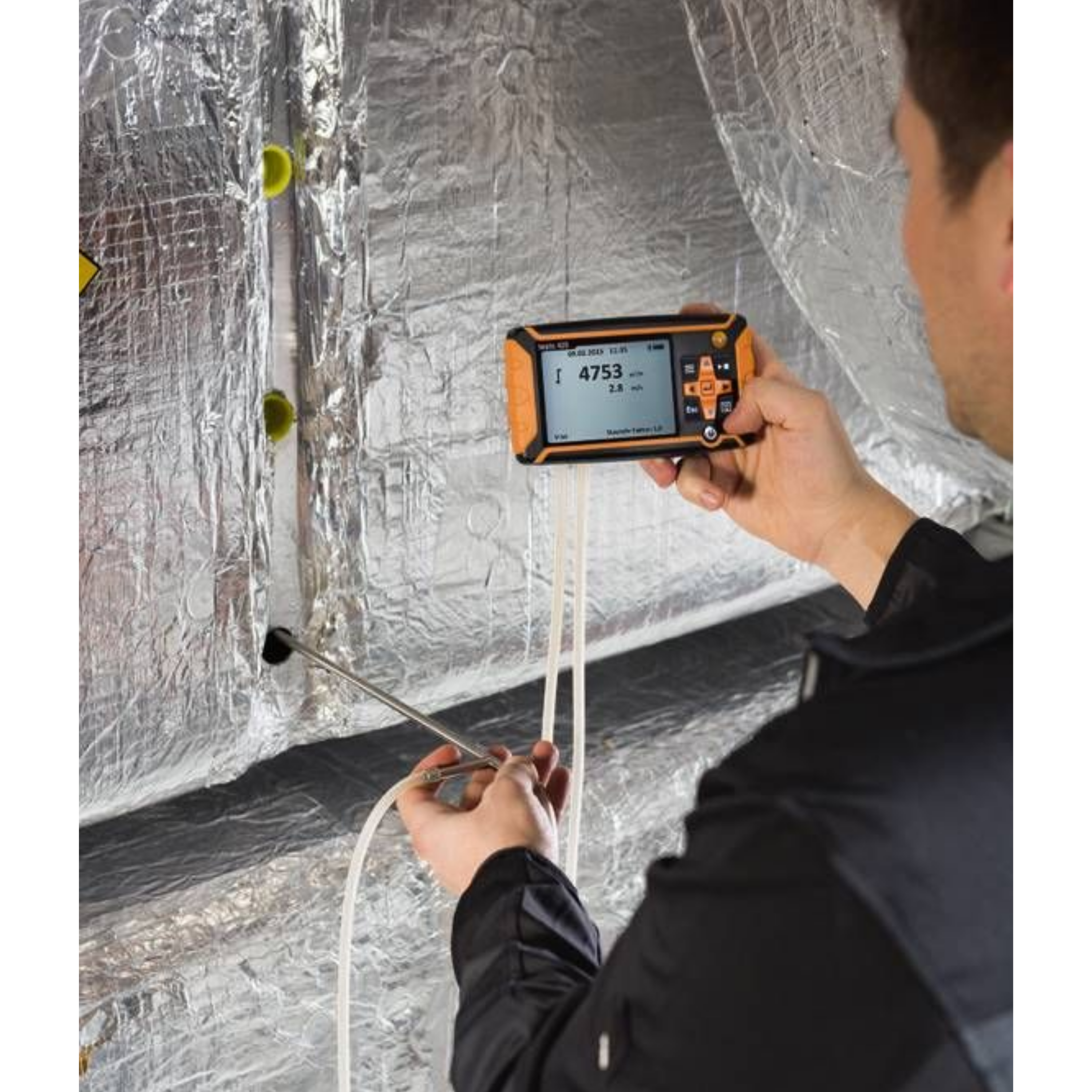 O balômetro vem com uma sonda integrada que permite a medição direta do fluxo de ar. A sonda é projetada para ser inserida em dutos e outras aberturas, garantindo uma medição precisa e confiável.